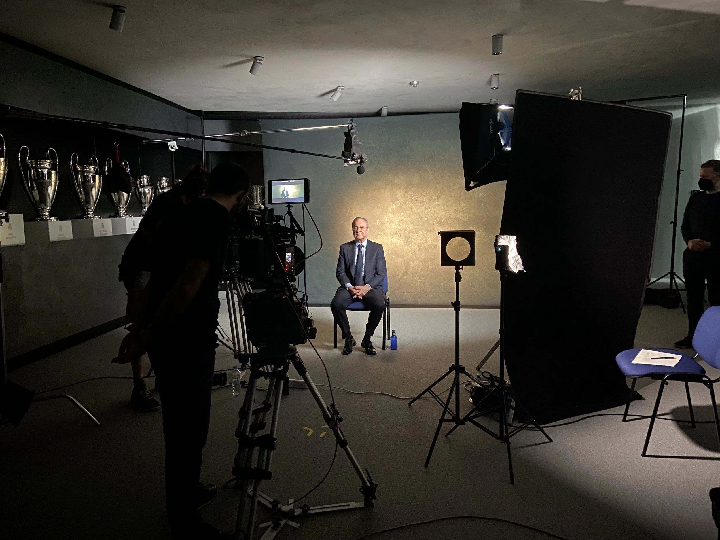 Getting him on board was essential. “The one we knew we had one shot with was Florentino,” David explains. “We really bided our time on that. We asked a lot of Spanish journalists about the best approach, and he very kindly agreed to give us a limited amount of time, at Real Madrid. One of the Madrid guys told me: ‘I’ve been here since 2005, this is only the second time he’s done an interview like this!’ – so we were nervous. They even insisted that it [the interview] had to be done in the Real Madrid trophy room, that we couldn’t have our backdrop,” David continues, laughing at the incredulity of the situation.
